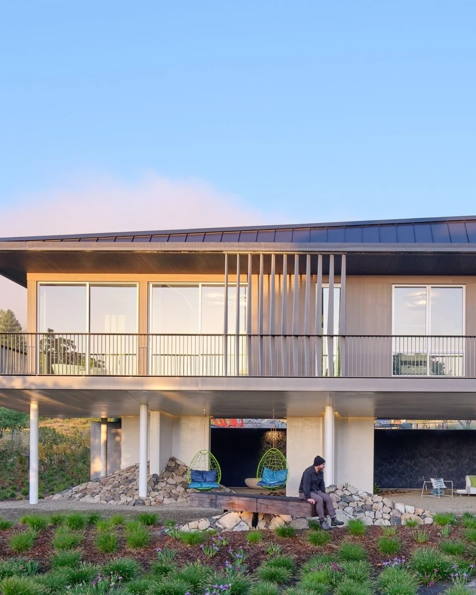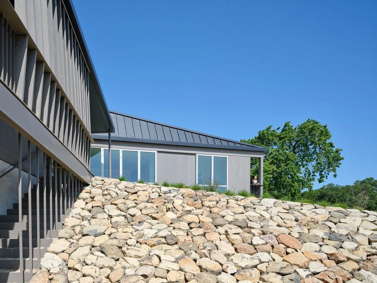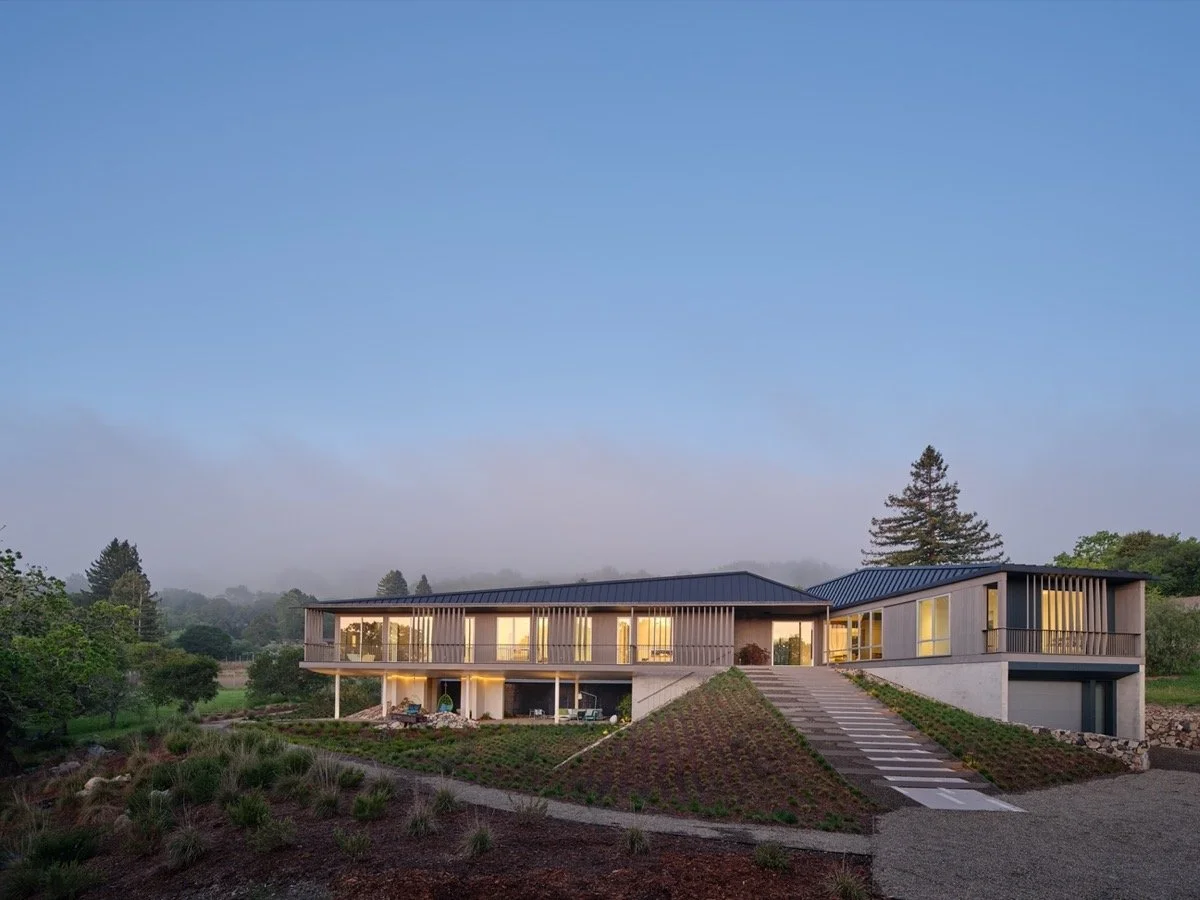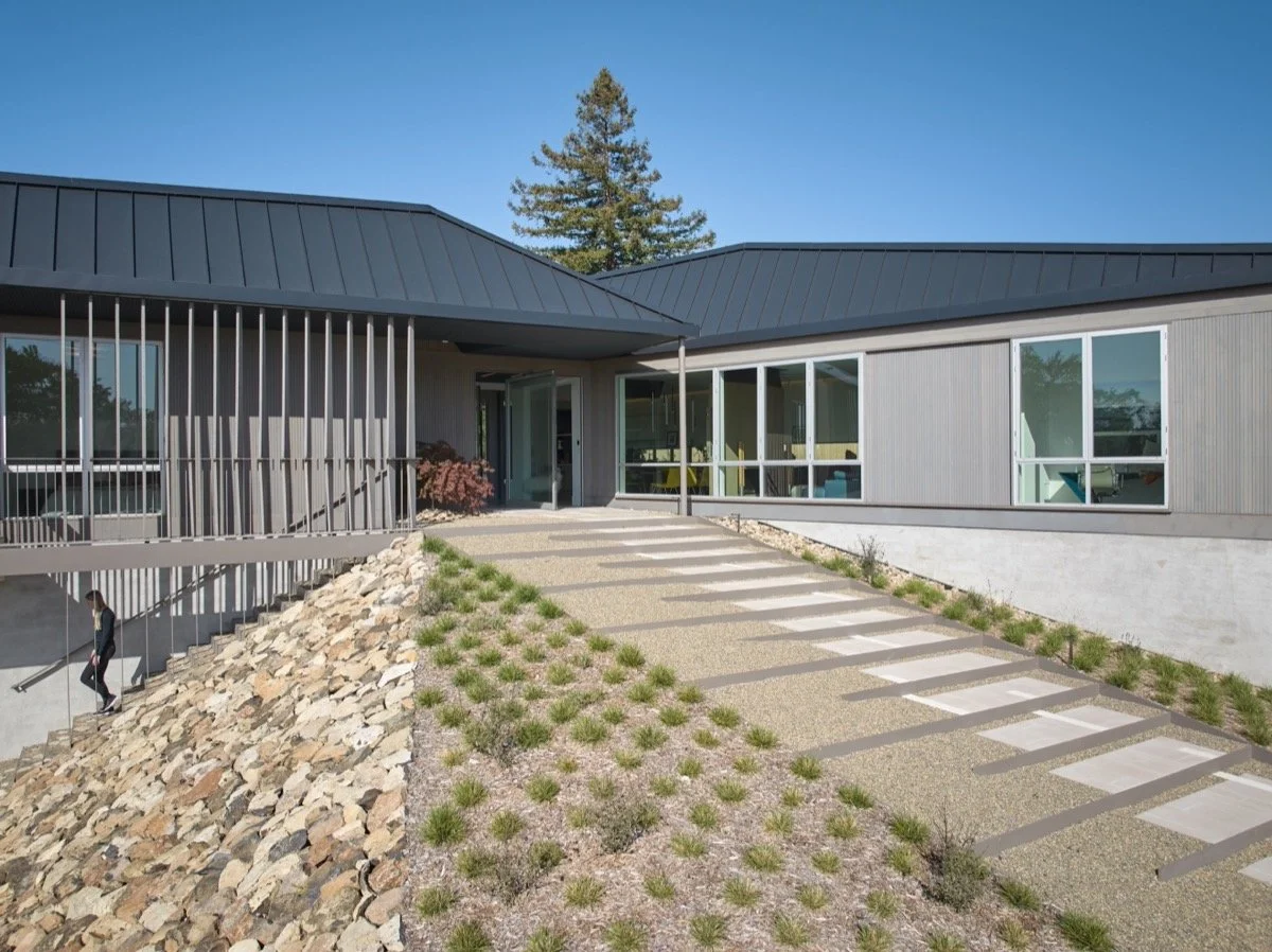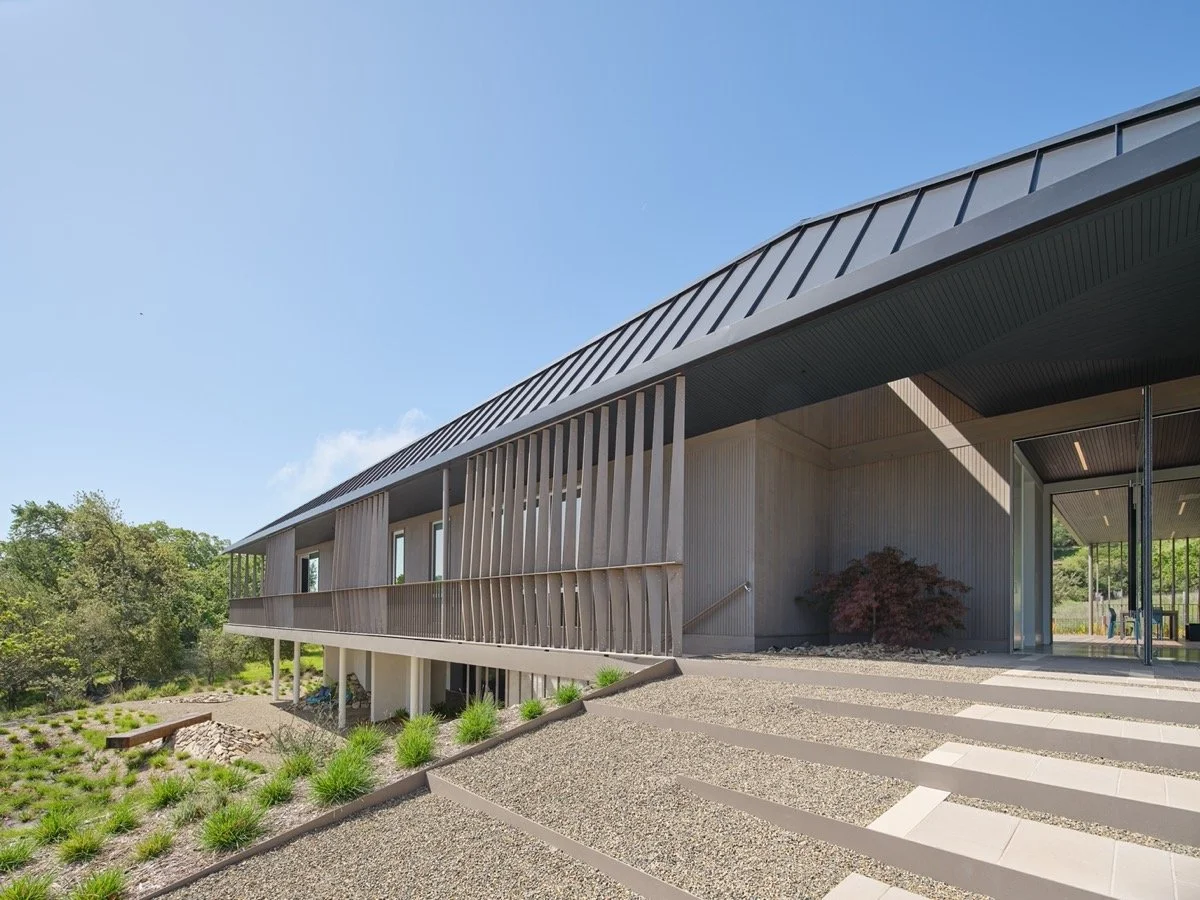 This Sonoma Mountain project, located on the east slope overlooking the Valley of the Moon, incorporates stone recovered during site excavation and repurposes it throughout the landscape to reinforce a strong connection to the site. Working closely with Arterra Landscape Architects, on-site stone was used in paving, retaining elements, and planting edges, grounding the outdoor spaces in the natural terrain and regional character.