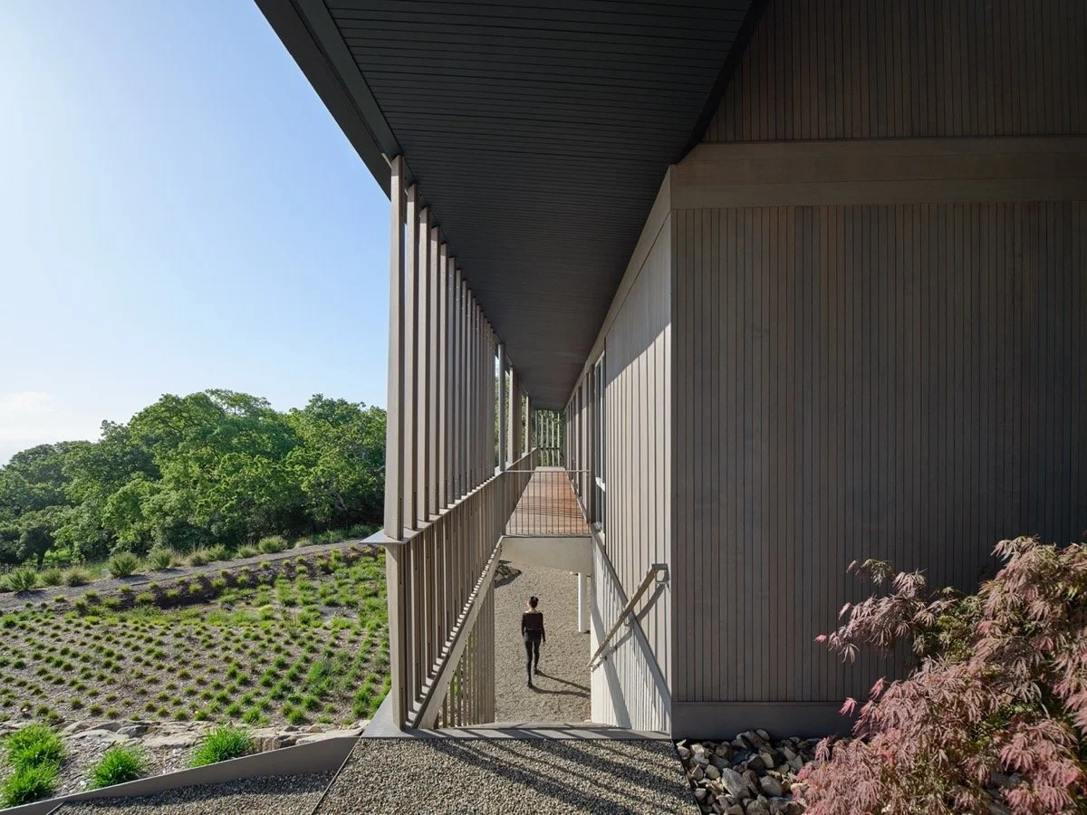 The landscape design responds to the site’s topography and expansive views, organizing the lawn, meadows, garden areas, and circulation into a series of connected outdoor rooms. Grading, pathways, and planting extend outward from the home, creating a seamless transition between interior and exterior spaces and reinforcing a continuous relationship between architecture and landscape.