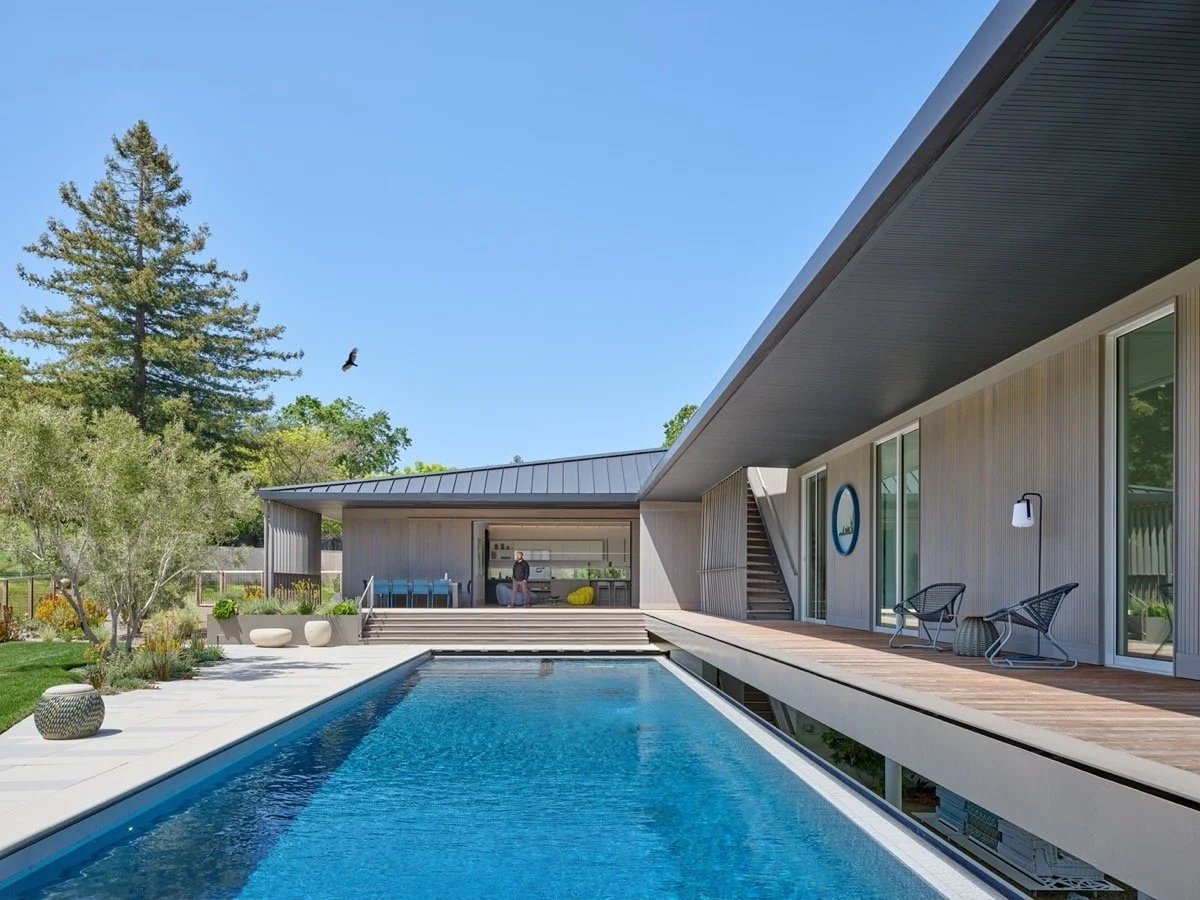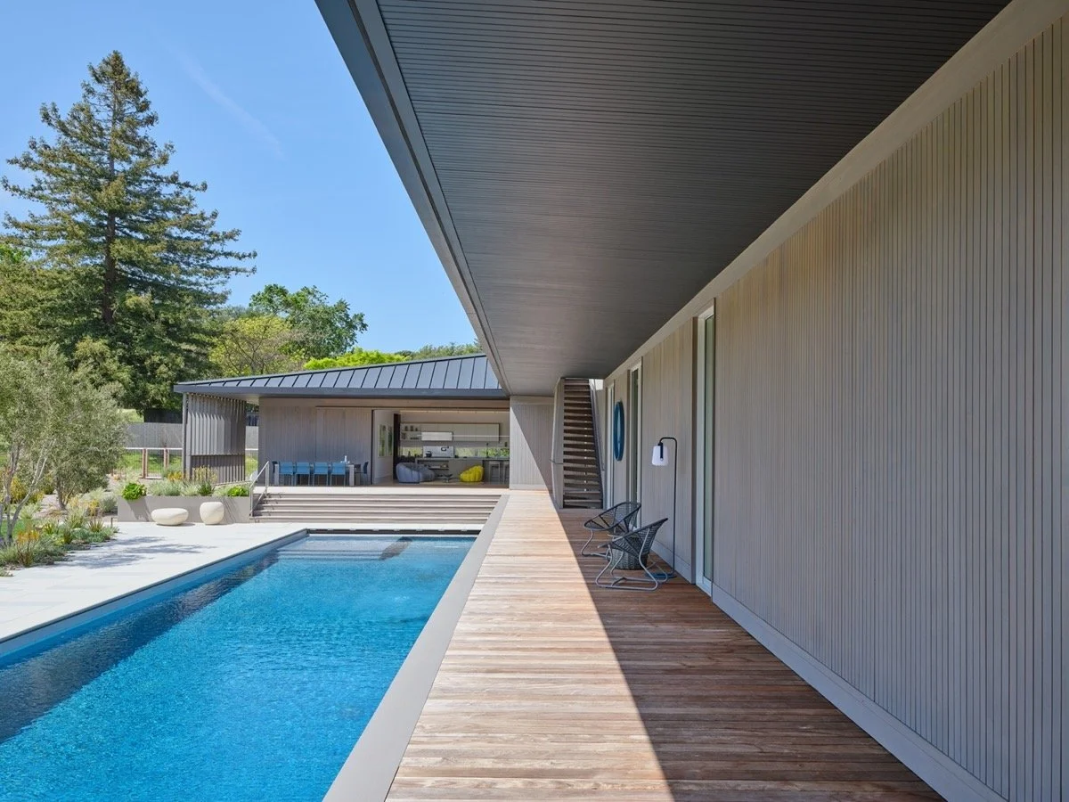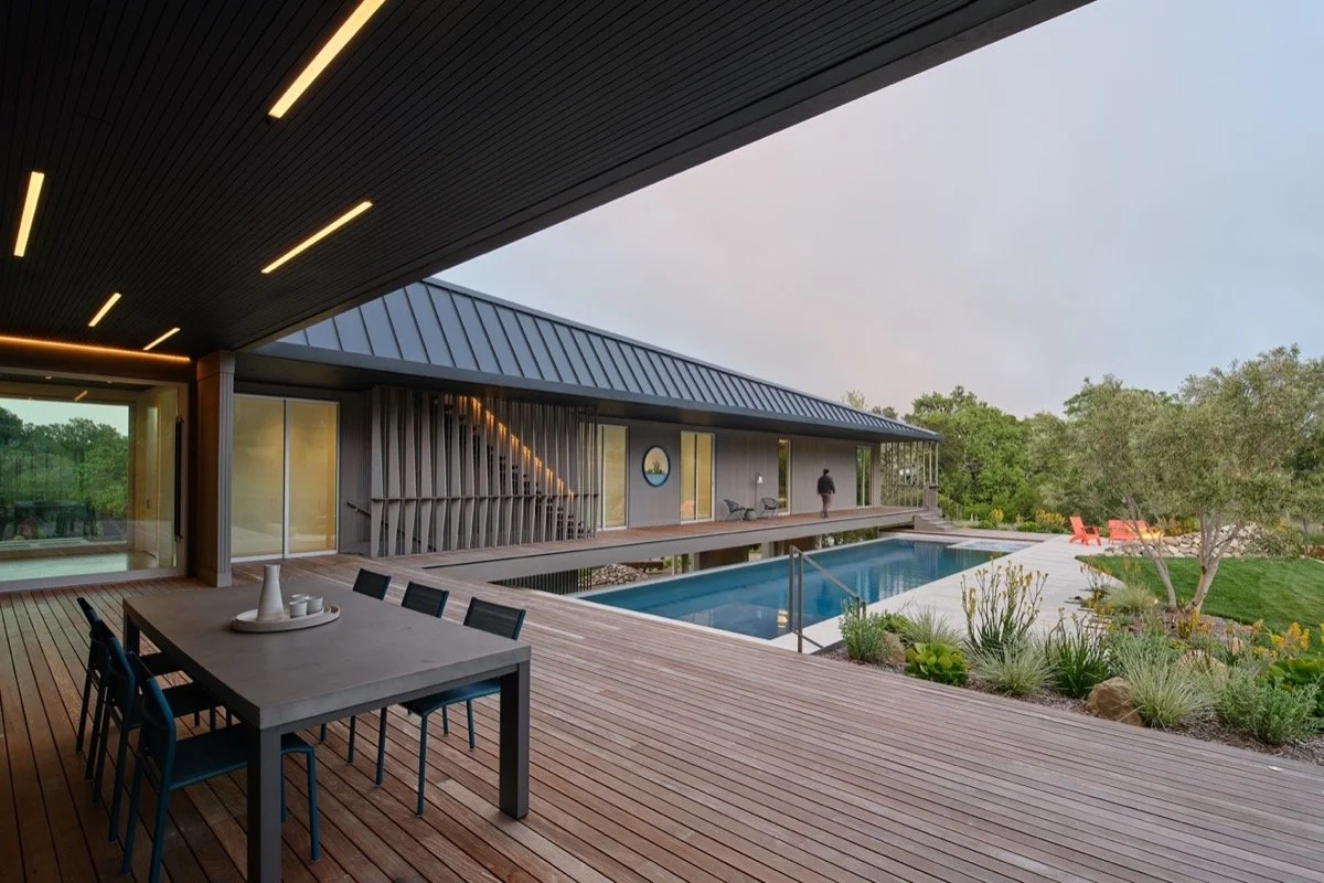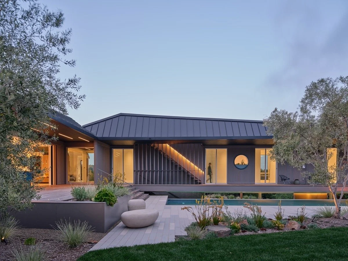 Together, shared material language, careful grading, and integrated pool and landscape elements create an outdoor environment that feels cohesive, intentional, and deeply connected to both the home and its Sonoma Mountain setting.